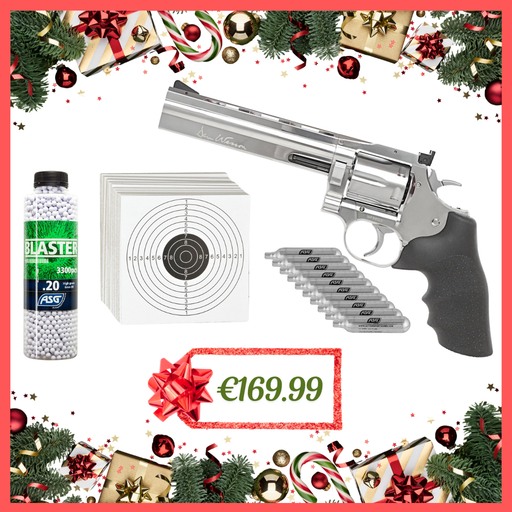 ASGChristmas deal! Includes all the items below: ASG Dan Wesson 715 6" - Silver ASG CO2 12g Cartridge - Single x10 ASG 100 Paper Targets. ASG 0.2g ...