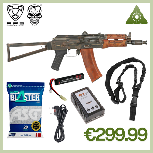 APS AK-74U Full Metal/Real Wood Battle Worn - Rifle Bundle
