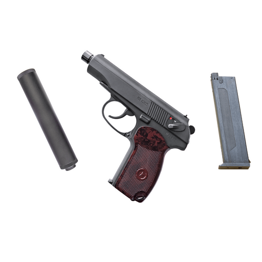 KSCThis kit includes a silencer and x2 9rd magazines. This is a fantastic replica of the Soviet PM Makarov pistol which saw heavy use in the second h...