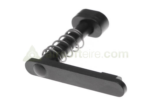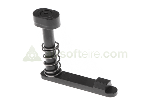 A G&G magazine release catch for GC models. Also compatible with other G&G M4 variants. Includes the button, catch, screw and spring.