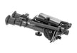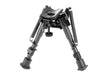 • A 6-position spring-loaded extendable carbon fiber legs bipod built from durable metal alloys with steel springs and mounting hardware.