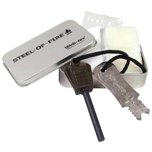 This fire starting kit from Web-Tex includes 2 Steel-of-fire tablets Web-tex Steel-of-Fire fire starter 2 pieces of cotton wool in waterproof bag ...