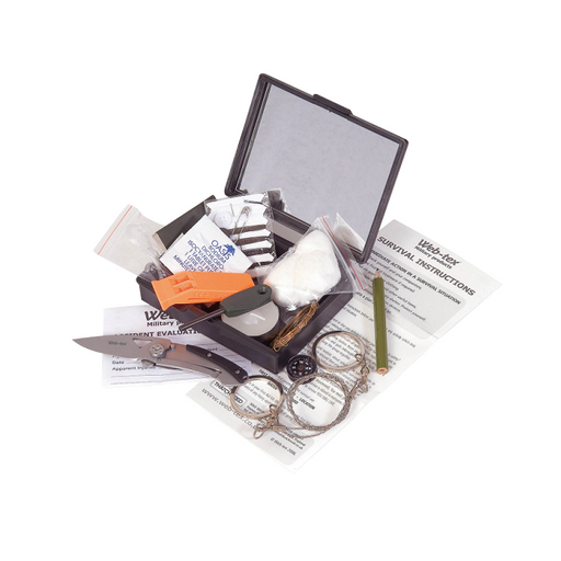 A great survival Pack from Web-Tex that comes in a hard plastic case with stacks of items perfect for survival. Quality Snap Knife. Firestarter F...