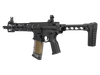 - The skeletal M-LOK accessory rail allows the attachment of any M-LOK accessory, like grips, flash lights, rails etc pretty much anywhere on the front end.
