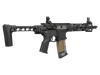 - The Compact 556 variant is a striking looking AEG in person, thanks to its unique skeletal styled handguard and foldable stock.