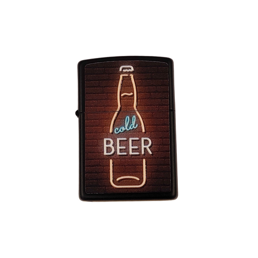 ZippoA matte black lighter with a pronounced textured print of a neon sign on a brick wall. Genuine Zippo windproof lighter with distinctive Zippo "cli...