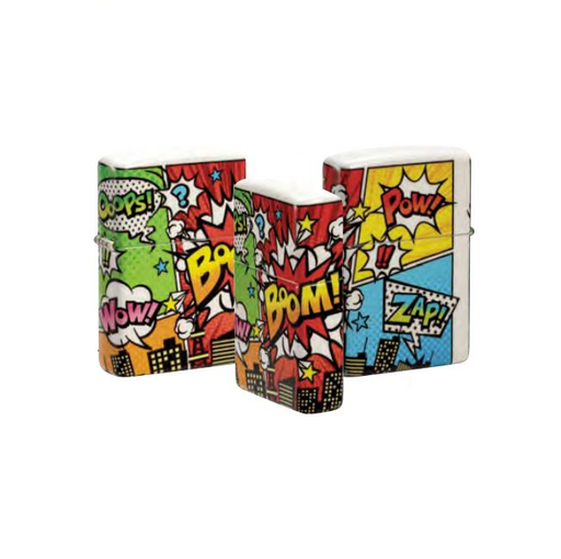 ZippoA matte lighter with a multi colour comic design. Genuine Zippo windproof lighter with distinctive Zippo "click". Packed in a gift box. Fill with ...