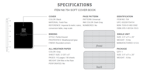 Tactical waterproof Soft Cover book from the reputable company Rite in the Rain. Allows you to save and read your notes in all weather conditions...