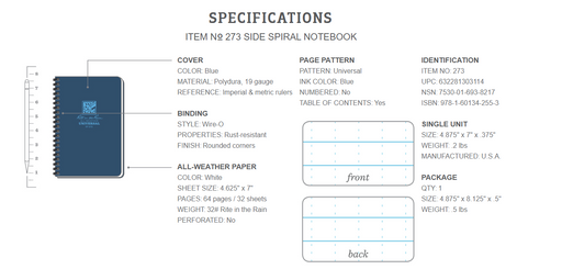 Rite in the Rain - Side Spiral All-Weather Notebook - Blue