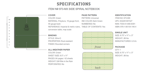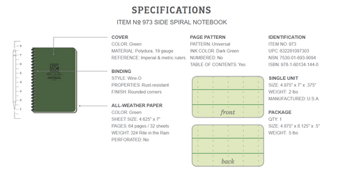 Rite in the Rain - Side Spiral All-Weather Notebook - Green