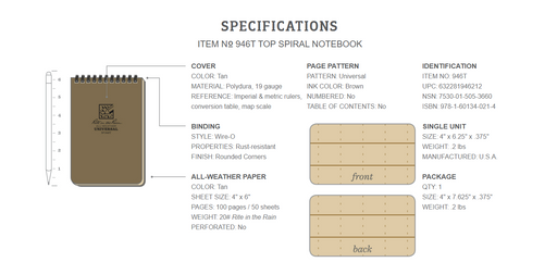 Rite in the Rain - Top Spiral All-Weather Notepad - Tan