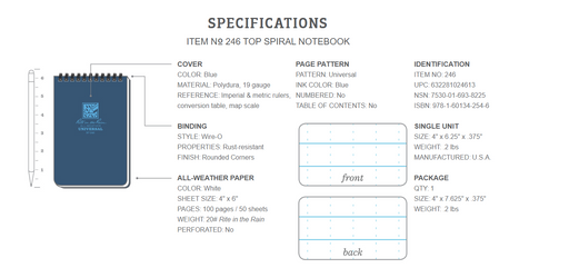 Rite in the Rain - Top Spiral All-Weather Notepad - Blue