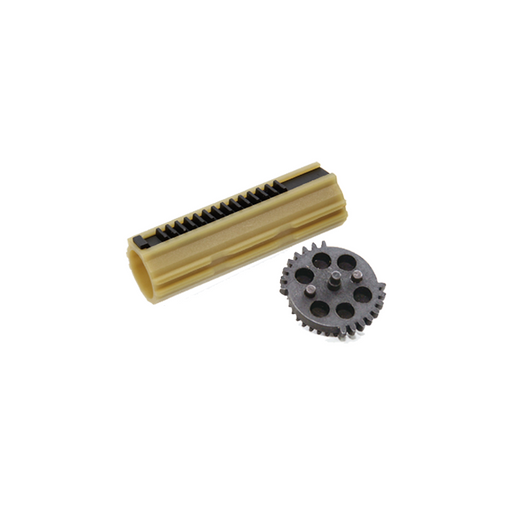 A gear and piston from G&G for V2/V3 gearboxes. For explosive rates of fire. Cycles the gun's piston twice for every revolution of the sector...
