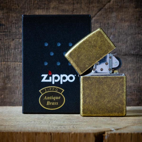 Genuine Zippo windproof lighter with distinctive Zippo "click". Antique brass with a distressed finish for that antique look. It is packed in a gi...
