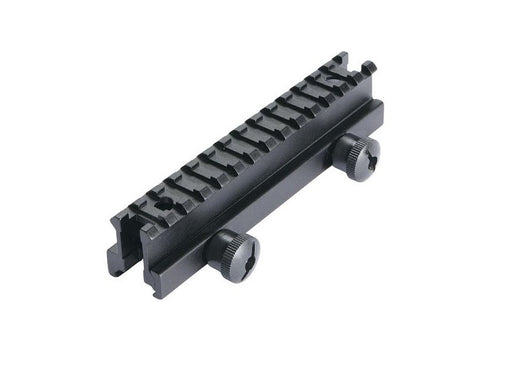 A scope riser rail from ASG. Black in colour. Full metal construction. Perfect for installation onto the scope rail of an M4A1 AEG. Large thumb sc...