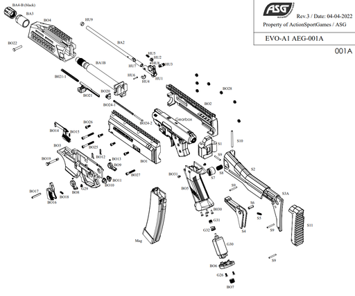 Original ASG parts. Pistol grip and baseplate set for the ASG EVO, suitable for all EVO variants. Part #BO5, #BO6, #BO7. Only grip is pictured, b...