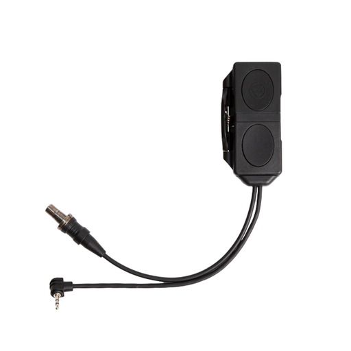 This remote switch features two buttons on a unified Picatinny rail control panel. Two cables connect to the aiming accessories on the weapon. ...