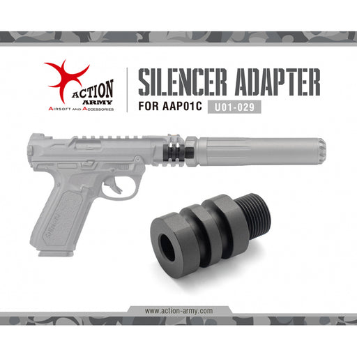 Action ArmySilencer Adapter for the AAP01C pistol from Action Army. Allows you to attach a tracer unit or mock suppressor of your choice. Some minor disasse...