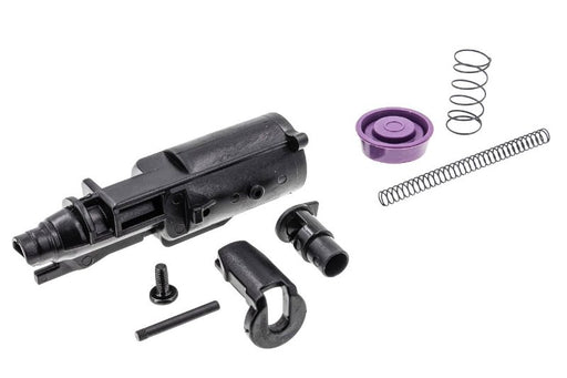 T8Designed for Tokyo Marui G17 / G19 Gen 4 series GBB pistols. Drop-in fit. Provides higher stability & gas flow. Includes all parts pictured.