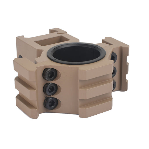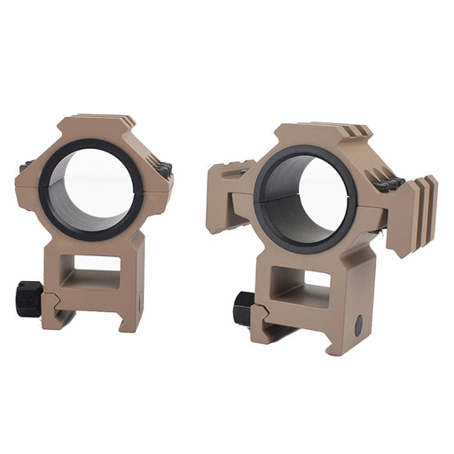 AIM-OSmall 20mm rails on 3 sides on one of the scope rings. Can be quickly attached and removed via side knobs. Full metal construction. Tan in colour...