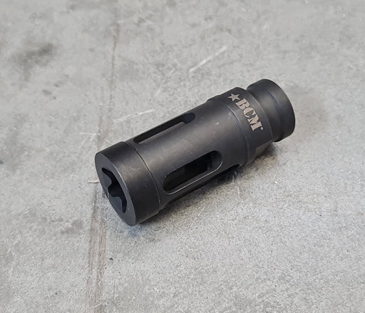 A highly realistic compensator for any 14mm CCW threaded barrel. Made from solid steel with QPQ coating. BCM stamped markings. Includes allen key...