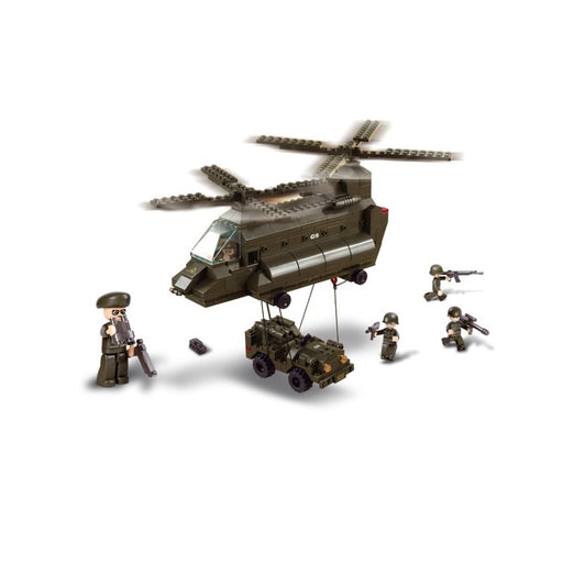 A fun Transport Helicopter kit assembled using Sluban's brick system. Fully compatible with other brands. Great for kids and big kids alike! Inclu...