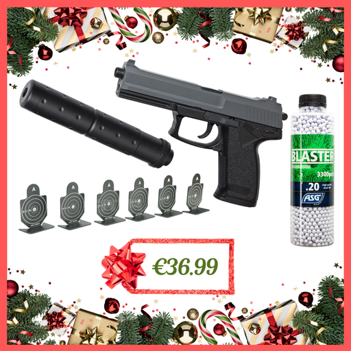 ASGChristmas deal! Includes all the items below: ASG (KWC) DL60 (MK23) SOCOM - Spring FMA Metal Practice Target Type A. Blaster 0.2g 3300 BBs In Bottle