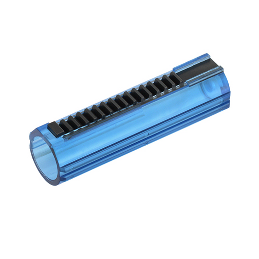 This tough piston from Point is made from polycarbonate with a rack of metal teeth. 15 tooth design with 1 tooth removed. Transparent blue colour.