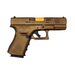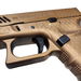 - Additional laser etching has been completed on the ejection port and outer barrel with insignia. "Custom 19" laser etching on the left side of the frame completes the custom work.